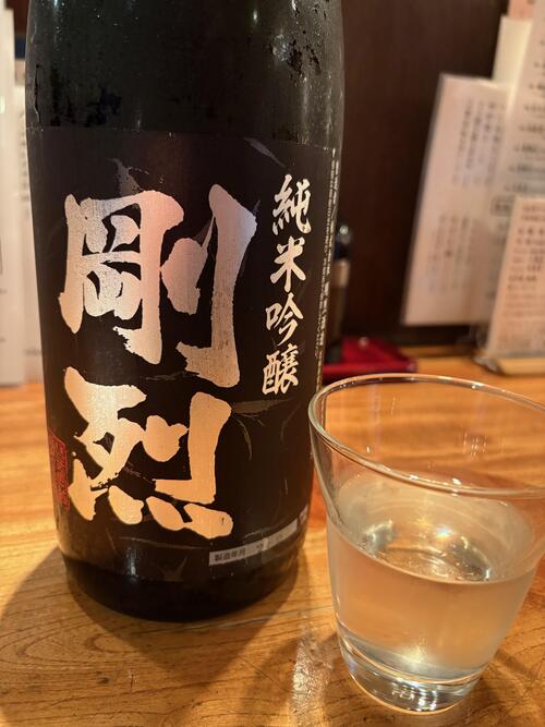 呑み頃まで自家熟成をかけてある銘酒揃いの中から、茨城の「剛烈」を頂けば、名前とは裏腹にすっきりとした味わい。香り控えめで後口キリッとドライ。秋刀魚の脂と溶け合う。滋賀「松の司」純米吟醸の生酛の乳酸感も抜群だ。