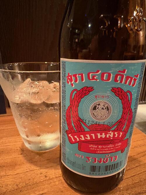 と一杯のグラスが慎さんから手渡された。チェイサーの水かと思いきや、タイの蒸留酒「ラオカオ」だった。優しい甘味もあり気品のある味わい。
