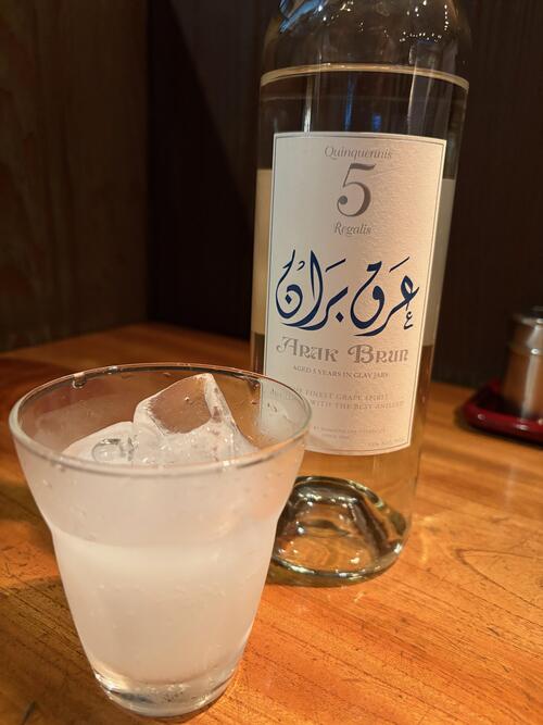 そしてこの日。口開け時間よりも1時間ほど早くお店にお邪魔すると、いきなりアニスの香りがするお酒「アラック」で出迎えてくださったのだ。お茶でもなく、日本酒でもなく、ワインでもなく、テキーラでもなく、アラック。予想の斜め上をいく慎さん、ますます好奇心が刺激された。