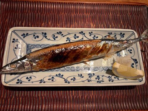 「新さんま塩焼き」は、まるで名刀のようなオーラを放ち、脂のノリも秀逸。根室産の秋刀魚だ。とくれば、日本酒だ。