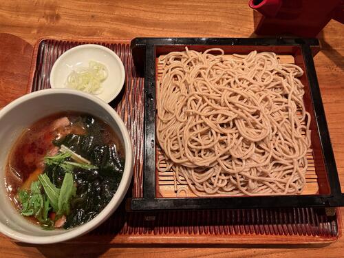 さて締めの蕎麦は信州産 石臼挽き特選更科の「鴨せいろ」。小盛りにしてもらったのだが、それでもなかなかの量。さすが町の蕎麦屋と感服していたところへ合わせるは、テキーラ「G4」のレポサドソーダ割。心地のいいスモーキーさが鼻に抜ける。鹿児島・指宿の特上本枯鰹節の出汁とのユニゾンが素晴らしい。