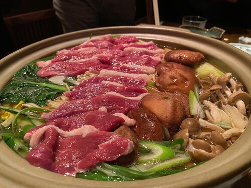 宮城・蔵王から氷詰めで直送されてくる合鴨でお鍋のコース料理、締めはもちろん鴨出汁でお蕎麦だ。