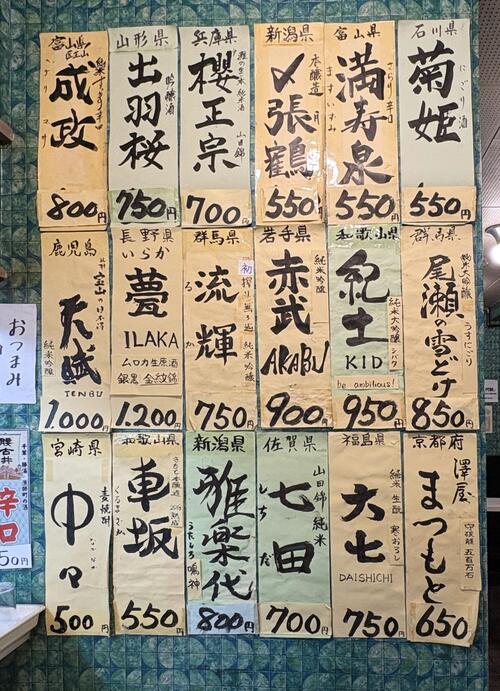 これまで随分とお世話になってきたのに、酒短冊の構成の意味合いを、全く知らなかった。不見識な自分を恥じながら、さらにおつまみとお酒をお願いする。