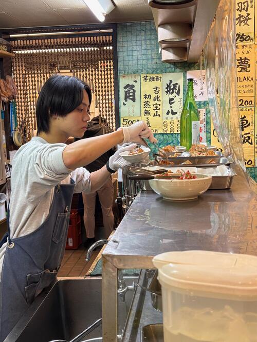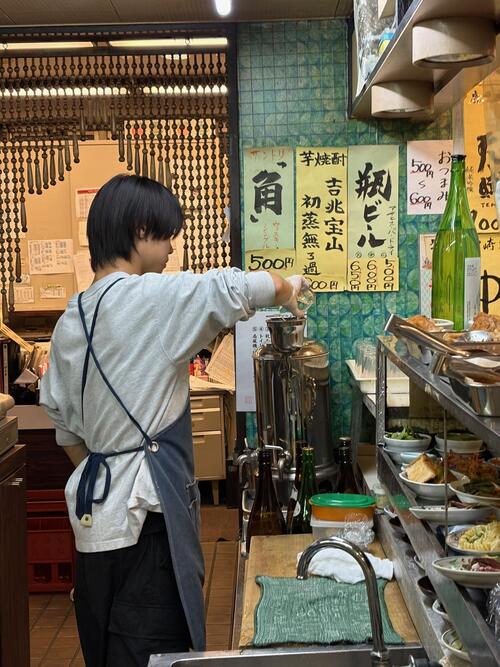 「仙台から転勤で、東京に来たばかりなんです。ここも、今日、初めて入りました。入り口が分からなかったから、酒屋さんの方から入ったら、女将さんがすごく優しく接してくれて、こっちの入り口に案内してくださったんです。あの優しさがなかったら、一人では入れなかったと思います」